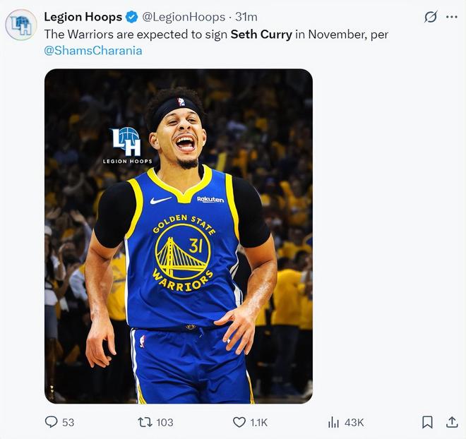 根据美媒Legion Hoops转发Shams的言论,勇士队将签下赛思-库里,小库里是斯蒂芬的弟弟,这样就能完成兄弟同队、同场竞技。